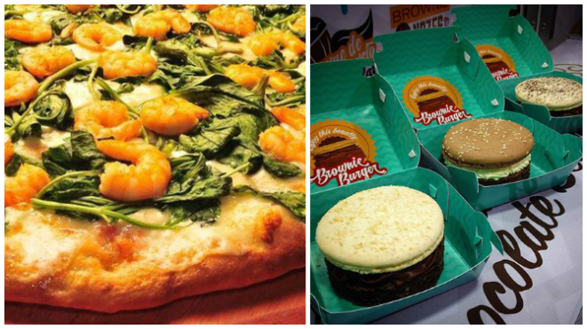 As opções vão desde a culinária francesa, como crepe francesa (R$ 25) e macarons (R$ 5), até pratos exóticos que resgatam ingredientes típicos brasileiros, como a pizza com camarão e jambu (R$ 25), erva da região norte do país que traz uma curiosa sensação de anestesia à boca.