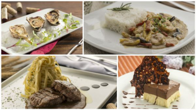 Tem pratos que levam mignon com preparos e molhos variados, carnes exóticas, frutos do mar e peixes, além de massas, receitas sem glúten e sem lactose, risotos, fondues doces e salgados, saladas e sobremesas como sorvetes, pudins, tortas, crepes, waffles, churros e panna cottas.