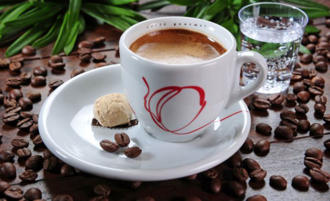 1 caffè latte + 1 fatia de bolo integral (sabores: banana, maçã e laranja com coco), suco de laranja + 1 pão de batata (sabores: requeijão, frango com requeijão) ou 1 moka (espresso, leite e calda de chocolate) + 5 mini pães de queijo
