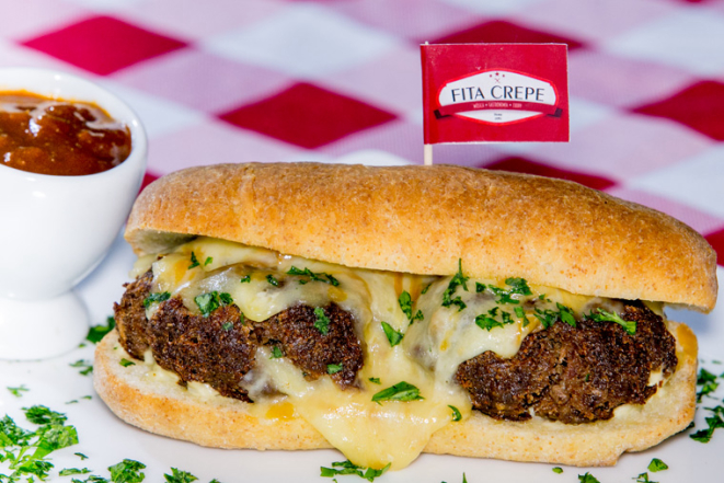Bolinho de carne recheado com provolone, molho rose no pão big francês.