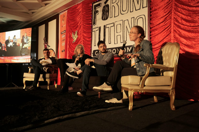 O último painel do evento foi relacionado à gastronomia voltada para o aspecto social. Estiveram presentes Gabi Mahamud, da Goodtruck; Samantha Souza, da Gastromotiva e Luiz Mileck do Coletivo Alimentar. A moderadora foi a jornalista Mônica Santana.