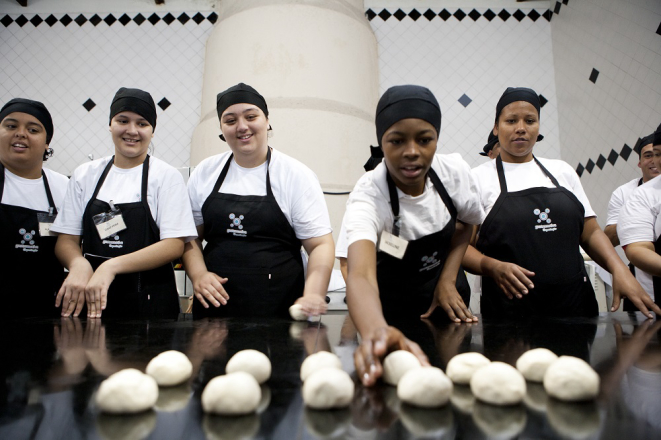 Além de aprender uma nova profissão, os participantes do curso vão colocar em prática alguns princípios da organização, como educação alimentar e combate ao desperdício de comida – aproveitando todas as partes de cada ingrediente.