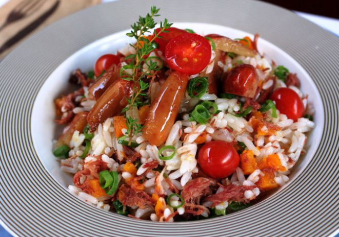 Risoto de pinhão e uma taça de vinho custam R$ 20.