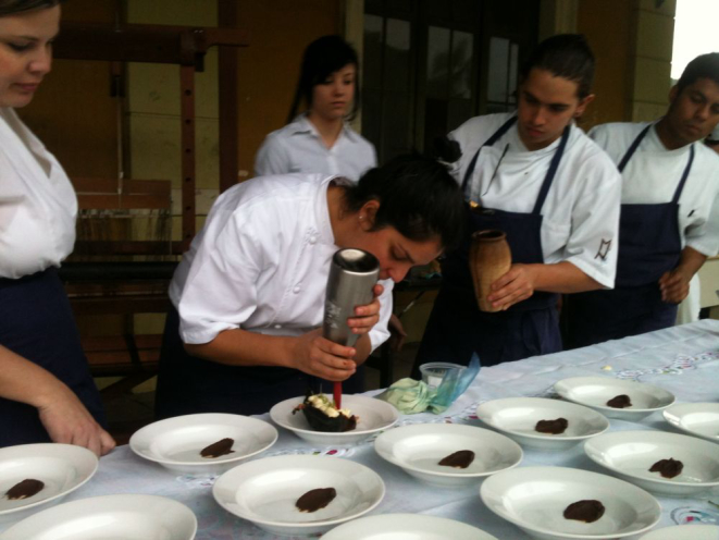 Harmonizado com vinhos da Villagio Grando, vinícola de Santa Catarina, os pratos foram: tilápia curada com cítricos e ervas da Mata Atlântica; mexilhão com espuma de coco e farinha fermentada; costela de chão, flor de sal e texturas de mandioca e, de sobremesa, banana assada, chocolate Prawer, fava cumaru e mel nativo.