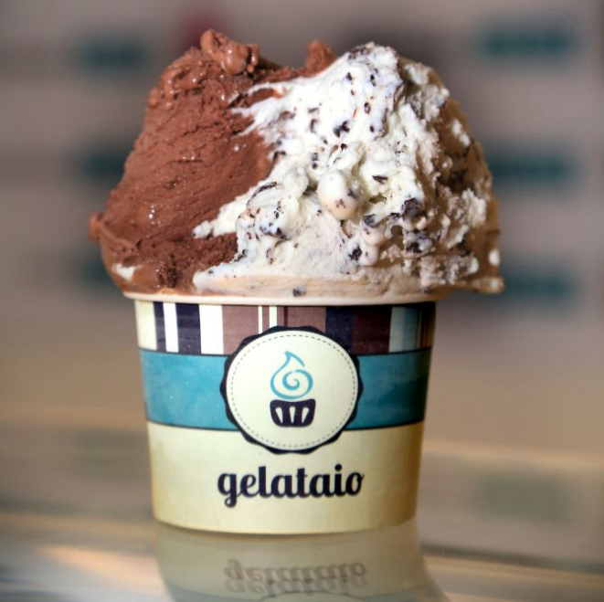 Gelataio: sorvetes nos sabores torta belga, chocolate, Kinder, morango, chocolate branco com maracujá e baunilha, R$ 10; brigadeiro, R$ 5.