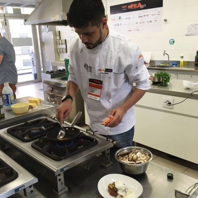 No Mesa ao Vivo, Lênin Palhano, chef do Nomade, em Curitiba, estreou no evento preparando um dos pratos de seu brunch: brioche com ovo caipira, cogumelos e espuma de grana padano. Além de Rosane, René e Lênin, estreou no Mesa SP Juca Esmanhoto, barista e sócio do Rause Café+Vinho. Juca contou sobre o Rause Café na Estrada, uma experiência itinerante de servir cafés de qualidade a quem trabalha nas plantações de café em Minas Gerais. “Para mim é de arrepiar pensar em estar no mesmo palco que pessoas que acompanho o trabalho. O café é uma coisa tão brasileira e fiquei feliz em ser uma faísca no principal evento de gastronomia do Brasil”, disse Juca por telefone ao Bom Gourmet. O barista exibiu o documentário da viagem e está com um projeto de livro de fotografias que documentam a aventura.