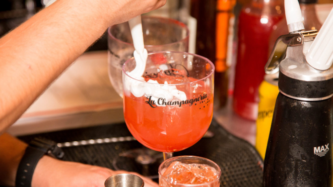 A La Champagneria desenvolveu uma carta de drinks exclusivos para a festa do Prêmio Bom Gourmet 2021. Eram quatro opções: Reencontro, Survivor, Resiliente e Reimagine.