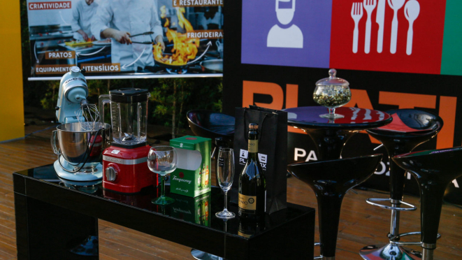 No estande da Gold Food Service, um caldeirão rendeu fotos divertidas, mas com um nobre propósito: cada hashtag #aliadasdobem valia alimentos, doados ao projeto Mulheres do Bem.