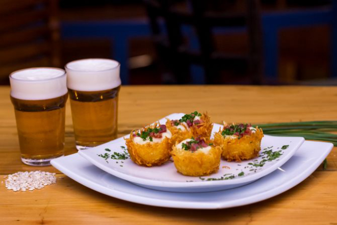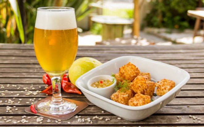 Combo 1 – Bávaro, chope Brahma (300 ml), bolinho de aipim com blue cheese e molho sweet and spicy.