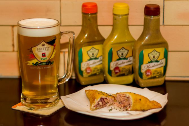 Combo 3 — Bier Hoff Weizen com um mix de pastéis de carne e queijo.