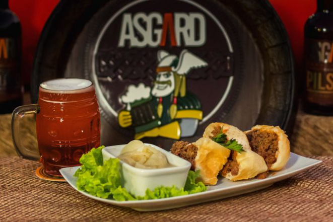 Combo 3 — Bier Hoff Weizen com um mix de pastéis de carne e queijo.