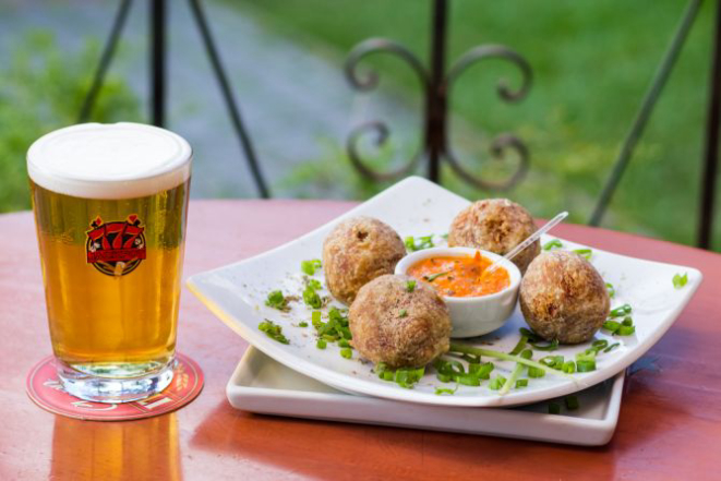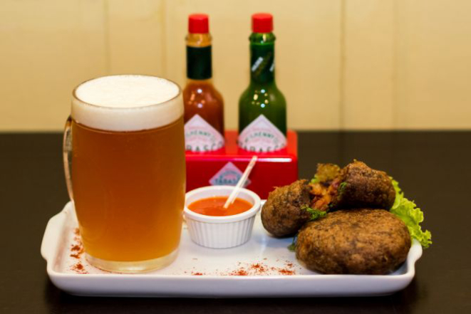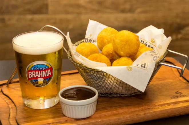 Combo 1 – Bávaro, chope Brahma (300 ml), bolinho de aipim com blue cheese e molho sweet and spicy.