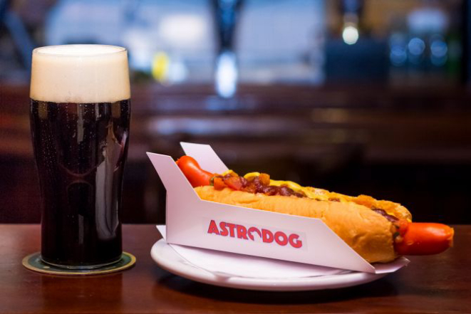 Combo 2 — Jokers II, chope pale ale Eisenbahn com Astro Dog Tradicional – pão, salsicha artesanal e molho tradicional.