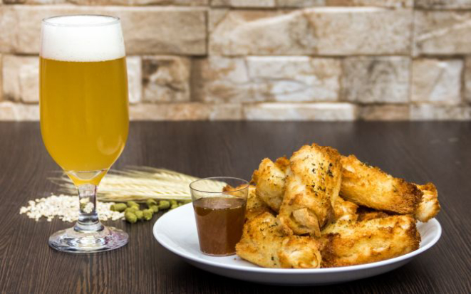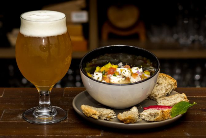 Combo 2 — Have a Croc, com um pint de Klein IPA, folhas de crostinni ao lemon pepper (fina massa assada com tempero cítrico picante).