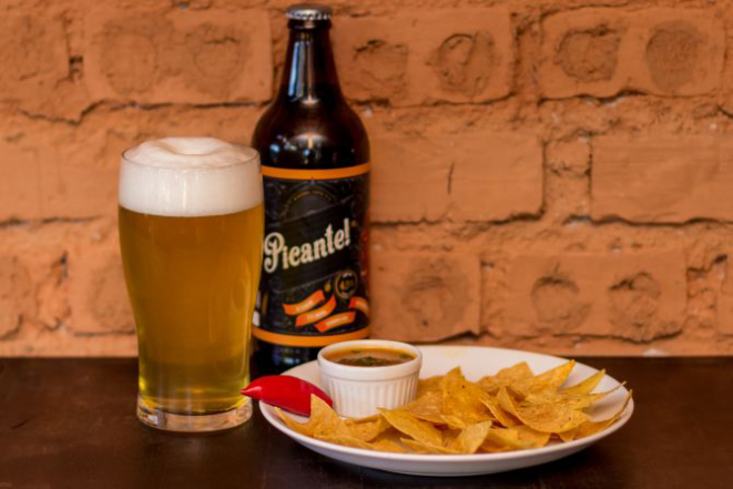 Combo 2 – Calabresa Apa, um pint de Vienna Lager e linguiça calabresa puxada na cebola com molho de cerveja APA.