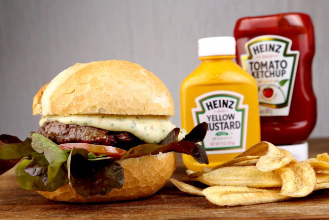 Ferreiro: Pão de alho com cheiro verde, hambúrguer de costela, barbecue, creem cheese, muçarela, cebola assada, bacon, molho juice roti e alface. Acompanhamento: Canudinhos de maionese e um trago de Jack Daniels.