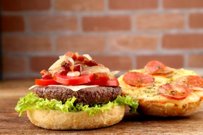 Garanhão italiano: Pão levemente torrado, hambúrguer bovino (180 g), alface, tomate, cebola, muçarela, pesto. Uma das fatias do sanduíche é montada como uma pizza: molho de tomate, muçarela, pepperoni e orégano. Acompanhamento: Ovos de codorna no palito.