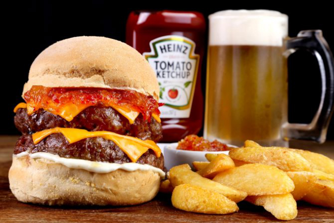 Twisted Sweetest: Pão, hambúrguer bovino com blend de raças britânicas. Molho Sloopy Joe, queijo prato, maionese de limão, rúcula e tomate. Acompanhamento: Batata frita.