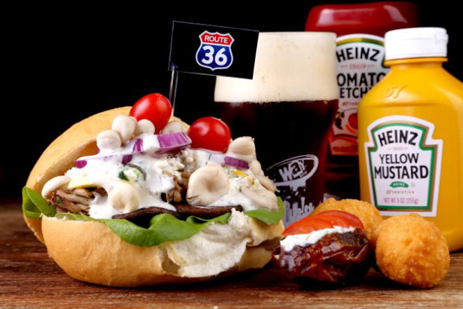 Route 36: Pão, cogumelo shiitake, maionese artesanal, alface, cebola roxa, ricota, shimeji e champignon