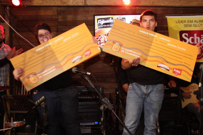 Como recompensa, os dois receberam um cheque-prêmio que dá direito a um ano de hambúrguer grátis. Ele pode ser usado uma vez por semana, de terça a domingo, com entrada livre.