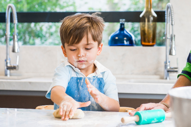 Outubro é o mês das crianças, e nada mais justo do que aproveitar o dia 12 para botar a mão na massa e se divertir com os seus filhos na cozinha. Além de passar momentos agradáveis com eles em uma experiência inesquecível, preparar o almoço com os pimpolhos ainda vai ensiná-los muitas coisas, como a se alimentar melhor, a quebrar um ovo sem espalhar clara e gema para todos os lados, além de ficar alerta aos perigos de se lidar com facas afiadas e fogo sem a supervisão de um adulto.