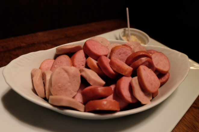 Para começar, um aperitivo que faz sucesso é a linguiça recheada com provolone, R$ 41, 5. Afinal, estamos em Blumenau. Tem também mix de quatro salsichas alemãs em rodelas, acompanhadas de mostarda e raiz forte (400g), R$ 43.