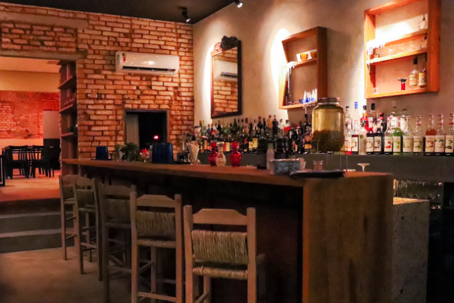 A carta é longa e permite muitas experiências como trocar gin por Steinhaeger Bartenike. E também tem comidinhas gostosas feitas pelo chef Bruno Malavoltas. A dica é experimentar os dadinhos de tapioca com queijo coalho, R$ 30 e a batata frita da casa, levemente empanada com farinha de beiju, trigo e especiarias, R$ 20. Para os vegetarianos e veganos têm o sanduíche Não Como Carne, feito de abobrinhas e berinjelas marinadas em azeite de oliva e alho, grelhadas com aceto balsâmico, açúcar mascavo e queijo provolone derretido (opcional), acompanhado de geleia de pimenta, R$ 22.