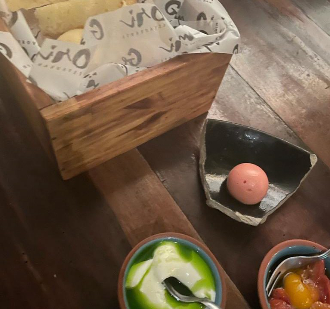 A gente começou com o shot de boas-vindas - e aqui, é válida a menção à carta de drinks autorais da casa, que também levam ingredientes bem baianos. A bebidinha foi servida acompanhada por um snack com o melhor do milho da região, que, a gente veio a descobrir, é uma das mais profícuas do país, especialmente na sua porção oeste. A poção líquida com a descoberta do melhor do grão serviu para amaciar o paladar para o que estava por vir - e, diga-se de passagem, não era pouca coisa.