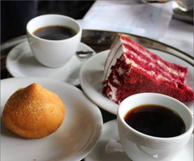 O carro-chefe da casa é a torta Red Velvet, que tem recheio de leite condensado cozido e pedacinhos de morango. A fatia é generosa e custa R$ 12. O espresso médio está R$ 5 – e pelo mesmo preço tem café coado.