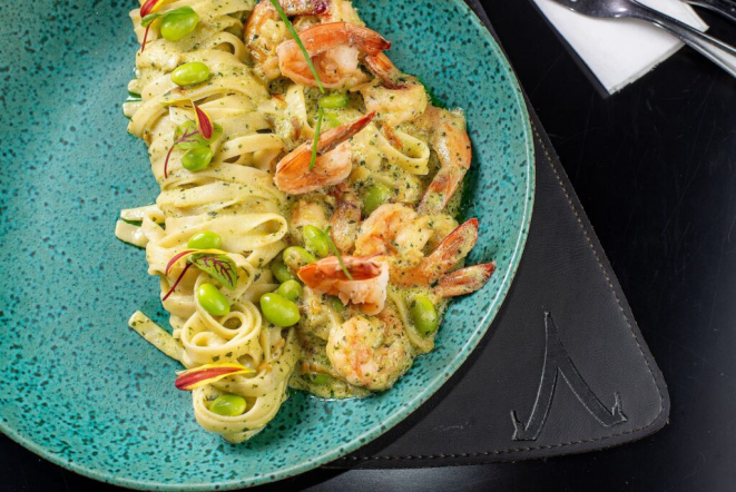 No Vino! a opção é o Fettuccine Nero, massa negra artesanal feita com tinta de lula salteada com molho de tomates e camarão. O menu custa R$ 109,90 no almoço e no jantar. Confira!