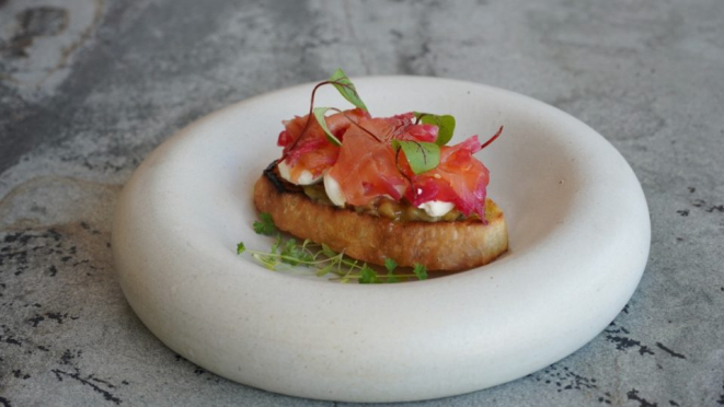 Para a entrada, os clientes podem aproveitar a tostada de pão de fermentação natural grelhada na brasa com salmão gravilax, sour cream e avocado.