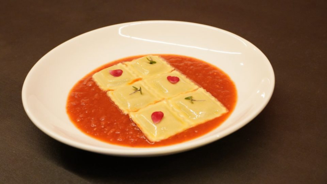 A primeira opção de prato principal é a lasanha clássica italiana feita com massa fresca de espinafre, recheada de ragú de carne, servida sobre molho de tomate italiano. A segunda, é o Raviole Putanesca, massa recheada com pasta de legumes tostados, servida sobre molho de tomate 100% italiano.