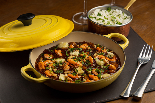 Referência em frutos do mar, a aposta do Coco Bambu para o Festival Bom Gourmet é o queridinho camarão. Aberto para almoço e jantar, o restaurante serve em ambas as refeições o camarão jangadeiro como entrada. A receita consiste em camarão empanado, recheado com requeijão.