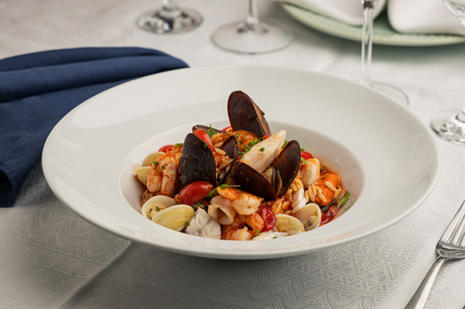 Mesclando sabores brasileiros com receitas da gastronomia italiana, o Pescara entrega sabores únicos. Tanto no almoço, quanto no jantar, os frutos do mar estão presentes na entrada, como no tortellini crocante de siri ao molho arrabbiata; e no prato principal, o risoni ai frutti di mare, uma massa curta com camarões, mexilhões, peixe branco e lula.