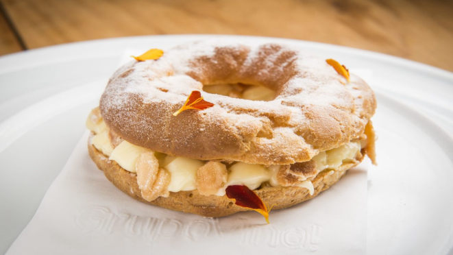 Que tal experimentar uma deliciosa sobremesa da França? No C'La Vie, restaurante que une a culinária francesa com os ingredientes brasileiros, é possível degustar pratos típicos do país europeu. No Festival Bom Gourmet, o estabelecimento conta com duas opções de sobremesa, sendo a "Paris brest", uma massa de pate aux choux recheado com creme de amêndoas tostadas, o doce típico francês. O outro doce é o "tarte tartin C'La Vie", torta de maçã caramelizada com especiarias. Ambas as opções podem ser conferidas no menu preparado para o almoço e jantar pelo preço fixo de R$ 109,90. Além da gastronomia sofisticada e moderna, os consumidores também podem aproveitar de um espaço clássico e aconchegante, no bairro Batel.