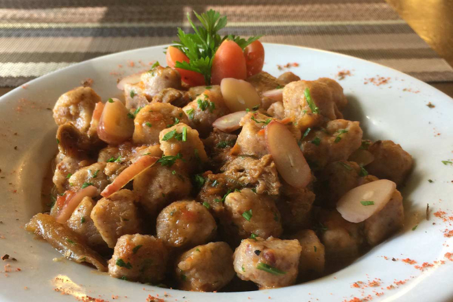 Gnocchi de pinhão com ragu de stinco de cordeiro