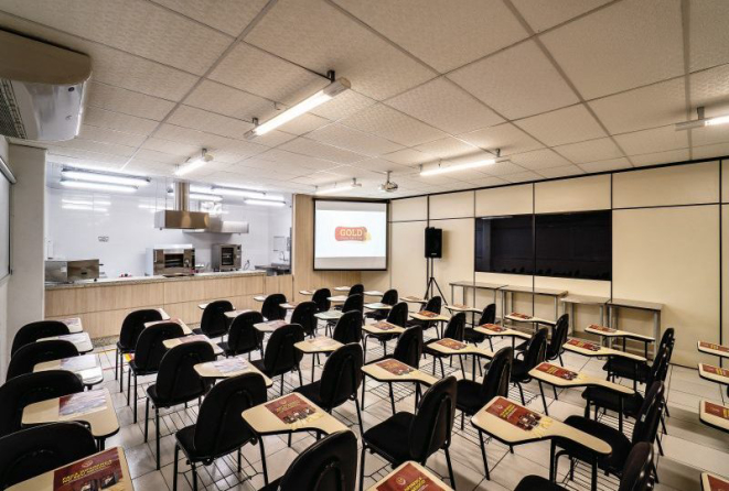 O foco da empresa não é apenas vender produtos, mas também oferecer toda uma estrutura de suporte que ajude o setor de gastronomia a crescer. A sede da Gold conta com diversos equipamentos do fazer culinário, como masseiras, fogões, fritadeiras, forno de pizza e chapa para hambúrguer, tudo parte de um espaço concebido para treinamentos oferecidos ao público. E o melhor, quem participa desses eventos não precisa ser necessariamente cliente da Gold.