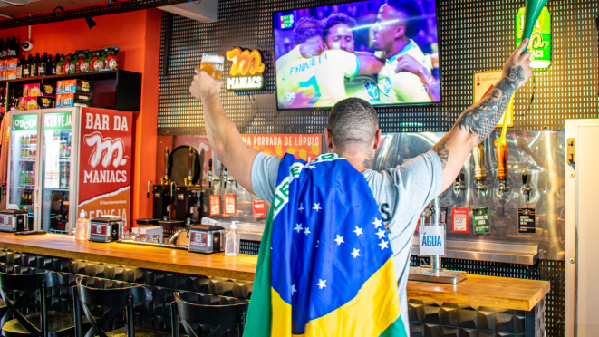 O bar da fábrica da Maniacs Brewing Co., no bairro Cabral, tem programação especial. Por lá, é possível curtir os jogos por um telão instalado especialmente para o torneio, em uma área externa coberta com 200 metros quadrados.