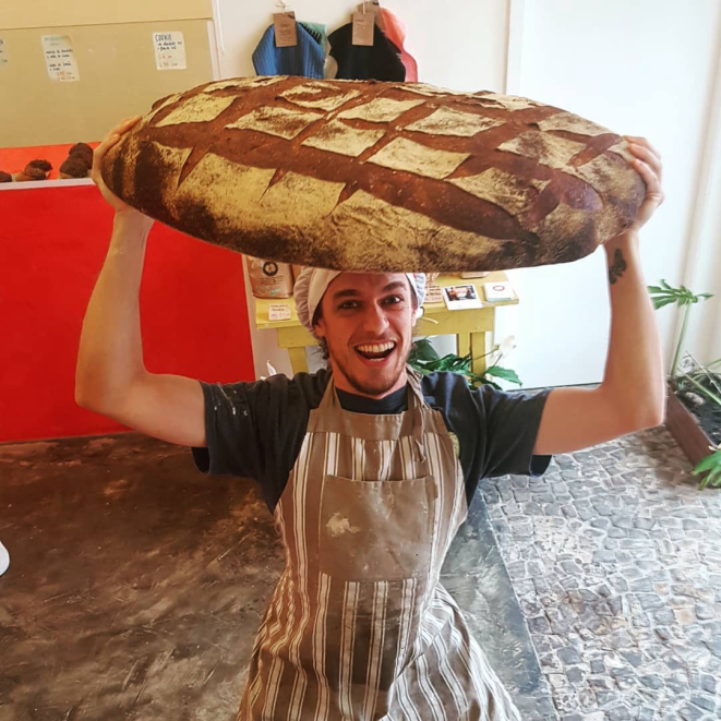 Com a ideia de estimular o trabalho artesanal, os padeiros e sócios da Maçã – Padaria Artesanal Brasileira, em Curitiba, resolveram produzir um pão com 7 quilos de massa de fermentação natural.