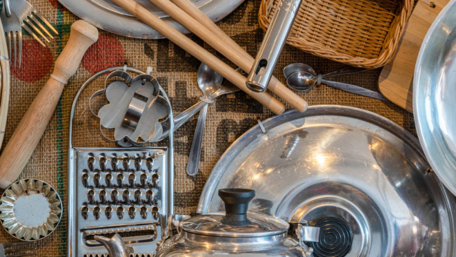 "Nossa intenção é sair do óbvio ao reutilizar os materiais para falar de cultura alimentar", pontua o artista. "A maior parte das aplicações veio com a pesquisa bibliográfica e as visitas em campo. Quando fui à Antonina, por exemplo, encontrei muita coisa no mercado local, como os utensílios de pesca", rememora.