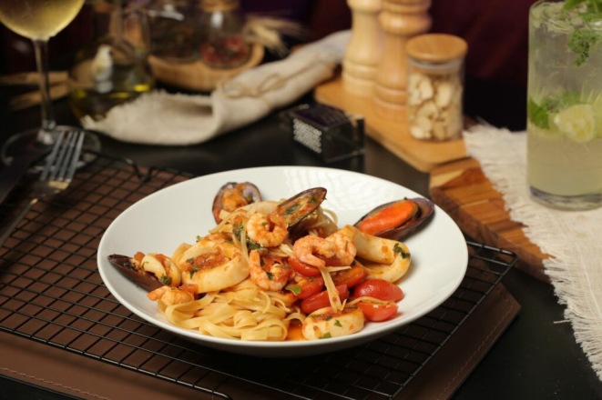 Comandado pelo chef Dudu Sperandio, o restaurante foca na culinária típica portuguesa ao trazer o melhor da culinária lusófona, indo além dos pratos clássicos. Arroz de Feijão com Entremeada Grelhada, Punheta de Bacalhau, Fetuccine à Bulhão Pato e Cabrito Assado à Moda Beirã fazem parte do menu.