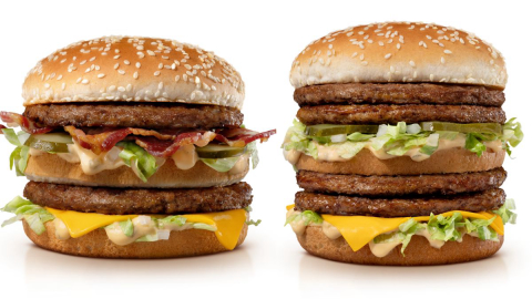 As duas versões do Big Mac - bacon e duplo - vão estar disponíveis por tempo limitado. Divulgação