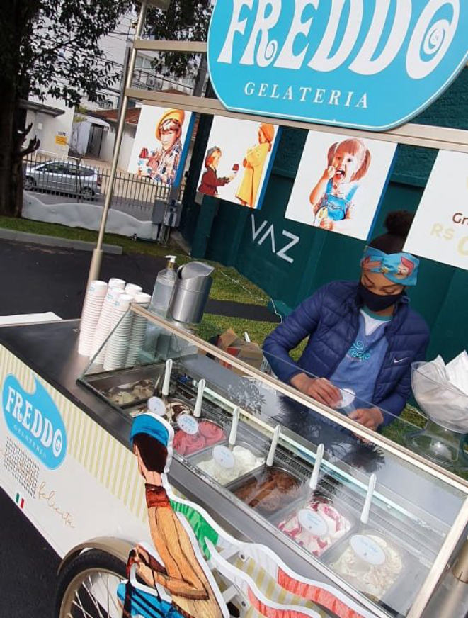 Imagine um pequeno caminhão carregado de gelatos passeando lentamente com seu jingle pela vizinhança, levando alegria aos clientes dos bairros. Parece cena de filme hollywoodiano, mas poderia ser uma rua qualquer em Curitiba. O caminhão de gelatos do imaginário do cinema se tornou realidade durante a pandemia de Covid-19. Esta foi uma das maneiras que a Freddo Gelateria encontrou de continuar levando os gelatos da marca até os clientes, mesmo quando a maior parte das lojas teve de se manter fechada por conta do lockdown.