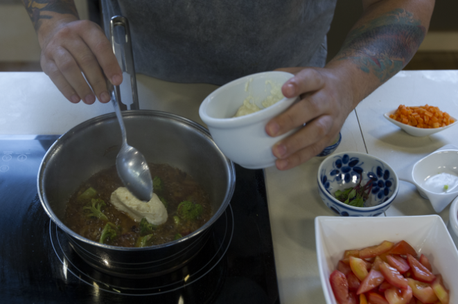 2 – Na mesma panela, refogue a cebola, o alho, a pimenta e o brócolis.
