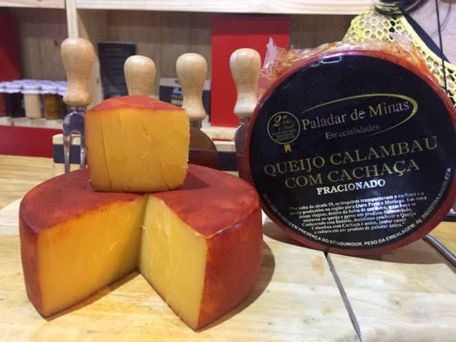 A branquinha também vem se lançando às mesas. Não por acaso ela foi ingrediente do queijo Calambau, uma das atrações da feira, produzida pela empresa Paladar de Minas, que fica na cidade de Presidente Bernardes (MG). Na fase de maturação do queijo, que dura 40 dias, a bebida é introduzida à receita, garantindo um sabor incomparável que o levou à uma premiação em 2017. Não era para menos. O produtor Geraldo Maciel Júnior levou cerca de cinco anos para desenvolver a receita perfeita. “Fazemos um queijo 100% caseiro, sem aditivos, tudo natural”. A peça de 700 gramas custa R$ 60.