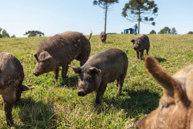 Enquanto o primo espanhol se alimenta de bellotas, frutos que se assemelham a castanhas, o porco brasileiro come frutas, pinhões, batatas e outros tubérculos, o que confere à carne um sabor único, típico da terra das araucárias.
