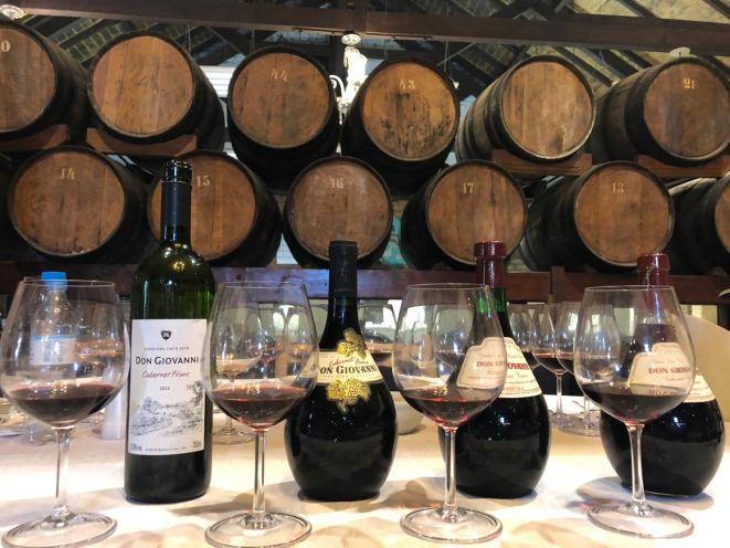 Na Don Giovanni, de Pinto Bandeira, provamos as notas evolutivas do varietal Cabernet Franc, de quatro safras: 1994, 1998, 2002 e 2012, conferindo as características de tipicidade da casta e comprovando seu grande potencial de guarda.
