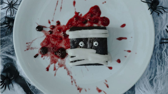 Até o dia 31 de outubro, o American Breakfast.Co, especializado na culinária das clássicas cafeterias norte-americanas, celebra o Halloween com opções exclusivas inspiradas na data. Entre os destaques do menu especial, está o Mummy Brownie – brownie de chocolate “enfaixado” e “ensanguentado”, com calda de mirtilos imitando sangue no prato –, além de pães de coloração preta em todas as opções que levam o ingrediente.