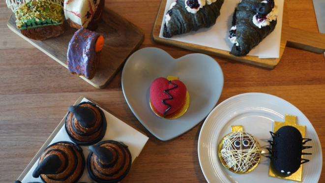 Completamente decorada, a confeitaria Délices de Sucre serve, até o dia 31 de outubro, uma seleção de mais de 20 opções entre doces, salgados e bebidas temáticas de Halloween.