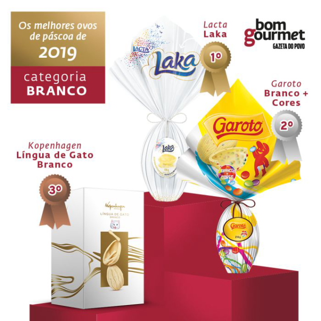 O ovo Laka, da Lacta, ganhou a disputa entre os brancos. Seu sabor foi considerado doce e equilibrado, com sinais de essência de amêndoas. A casca apresentou pequenos cristais de açúcar, um ponto negativo, pois a massa de chocolate deve ser homogênea. Média de preço: R$ 30 (170 g).